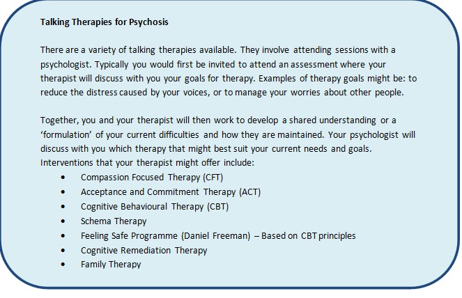 There are various treatments recommended for psychosis, and guidance states a combined approach to treatment provides the best outcomes.